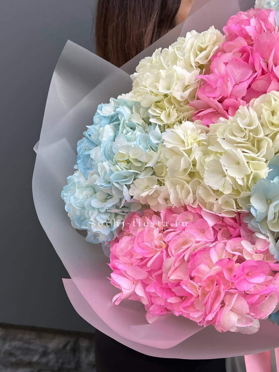 гортензия - 9 шт., лента, дизайнерская упаковка.