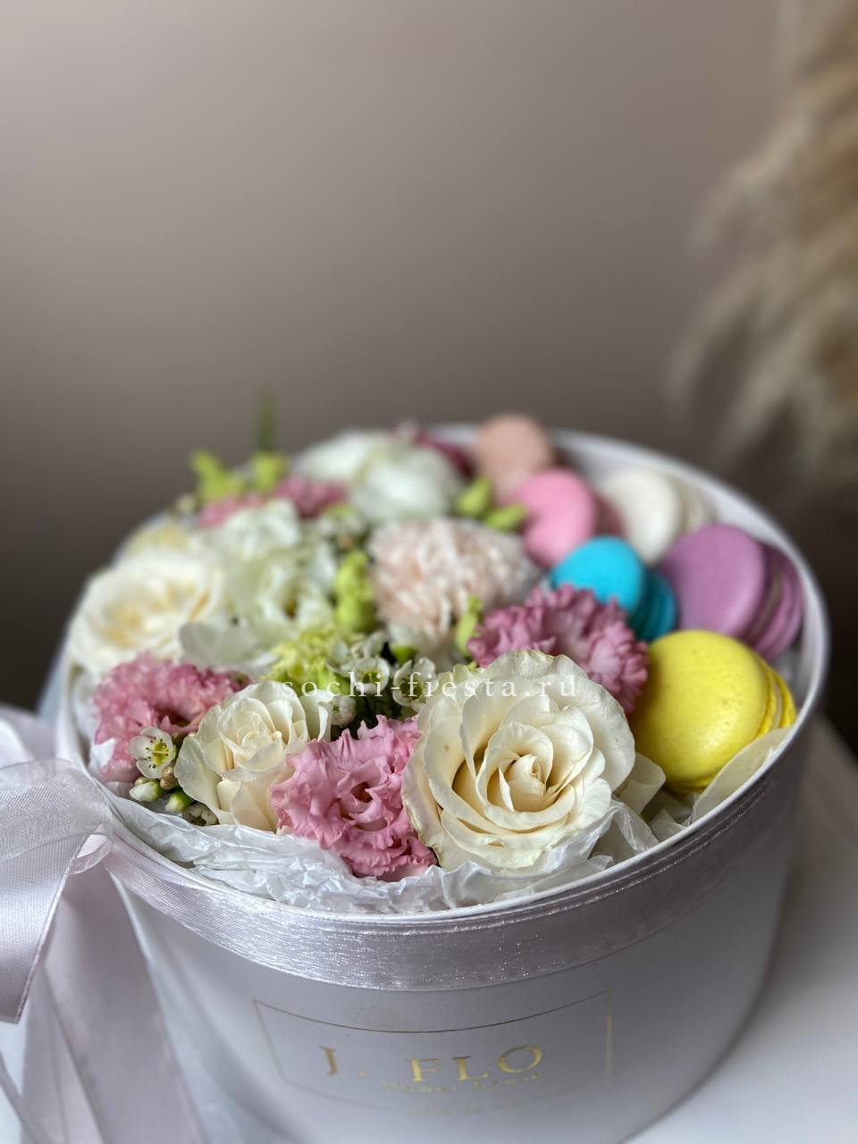 Настоящий цветочный фейерверк в стильной коробке! Эта пышная и многосоставная композиция притягивает взгляды богатством форм и оттенков — от кремового и персикового до насыщенного розового и белого. Это не просто цветы, а целая история о радости, празднике и восхищении. Подарок, который гарантированно произведет яркое впечатление и останется в памяти надолго.