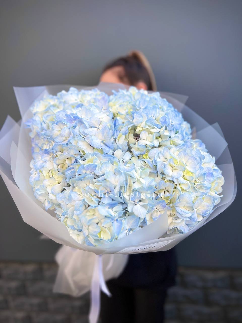 гортензия розовая 9шт., лента, дизайнерская упаковка. Цвет гортензий может незначительно отличаться.