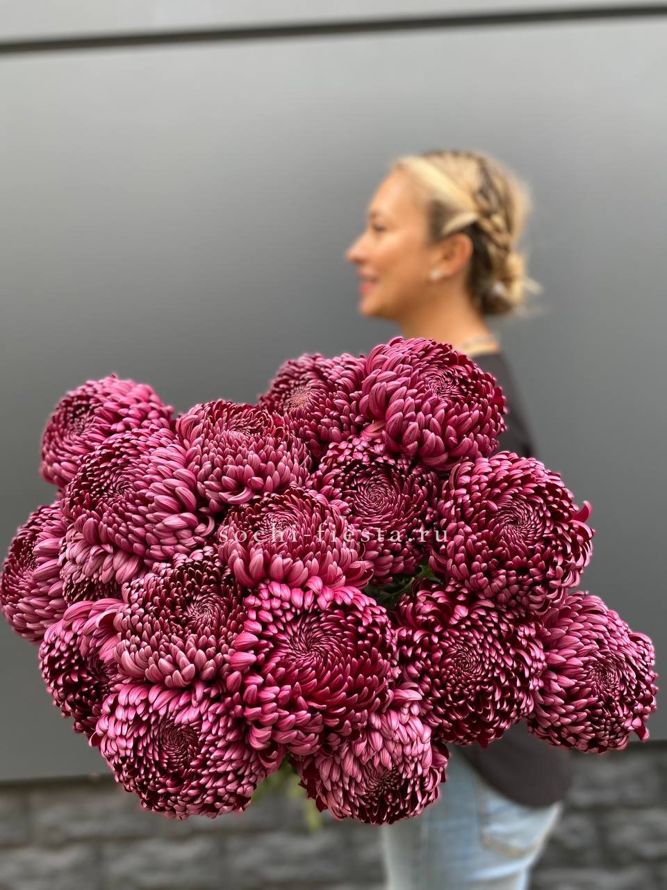 одноголовые хризантемы Бигуди, лента Количество на фото 15 шт.