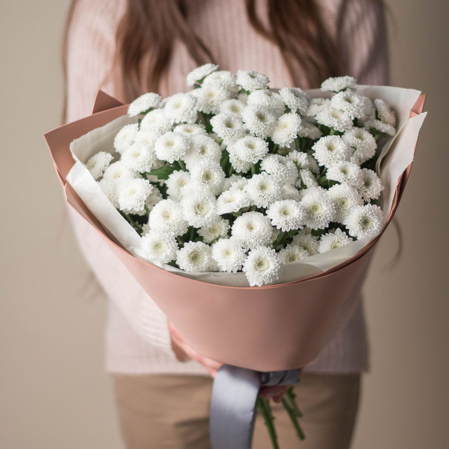 9-11 веток хризантем сантини, лента, дизайнерская упаковка.