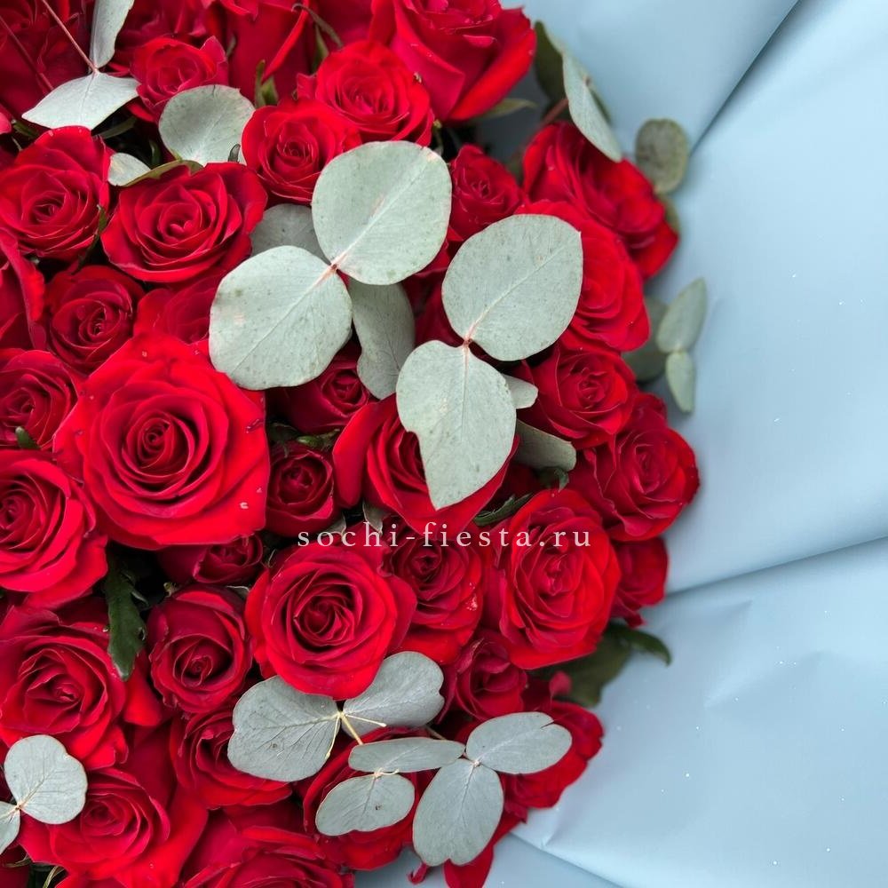 гортензия, эустома, кустовая роза, маттиола (или львиный зев), роза одноголовая, каллы (или аналог), эвкалипт, лента, упаковкаСостав букета в несозон может нести незначительные изменения.
