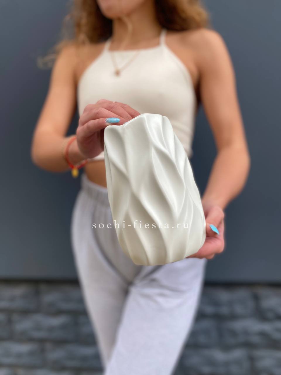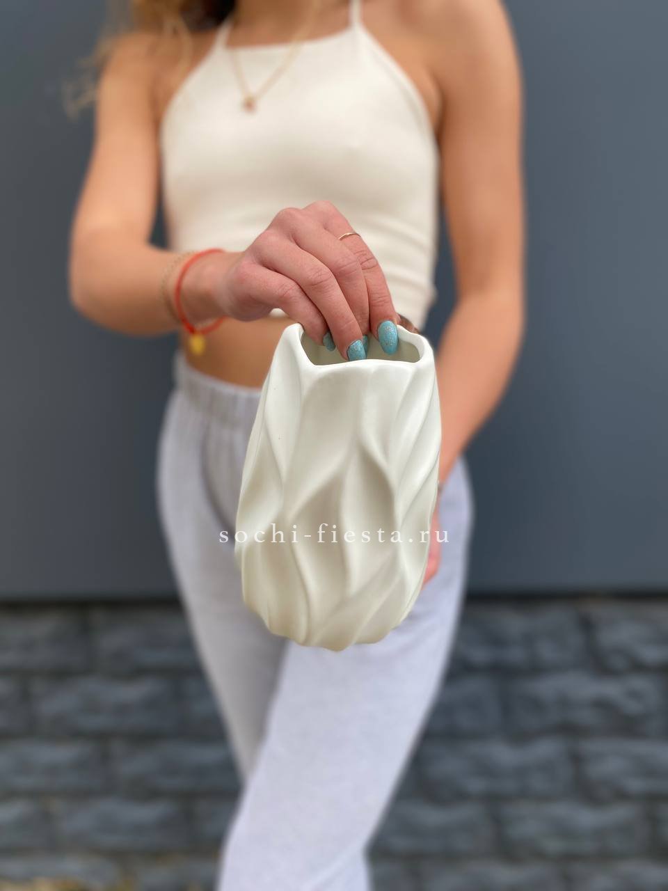 декоративная ваза- это изящное дополнение к любому интерьеру. Геометрический рисунок на белой керамике придает вазе современный и лаконичный вид, который гармонично впишется в любой дизайн. Высота 18 см. Ширина 12.5 см