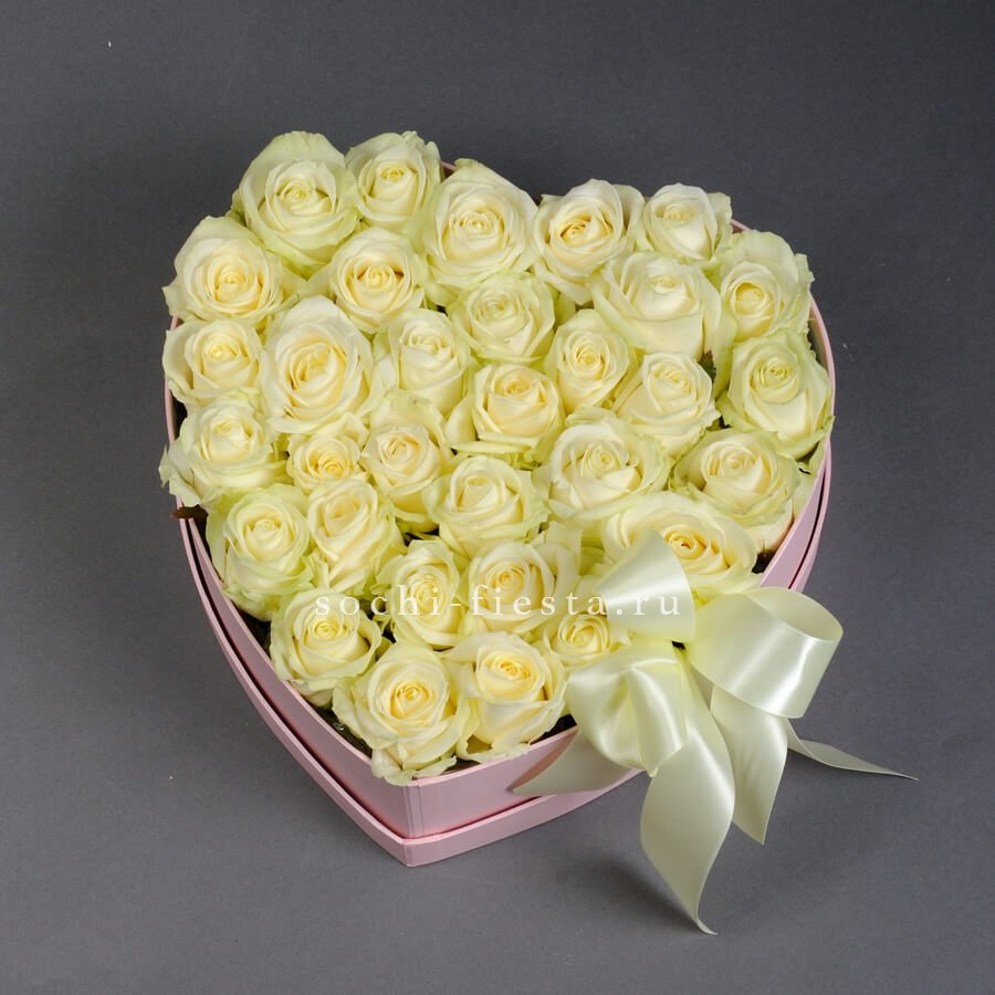 Двадцать пять вывернутых французских роз наполняют белый цилиндр графичной структурой. Бутоны раскрыты плотно, лепестки образуют многослойную текстуру с мягкими изгибами и глубиной.