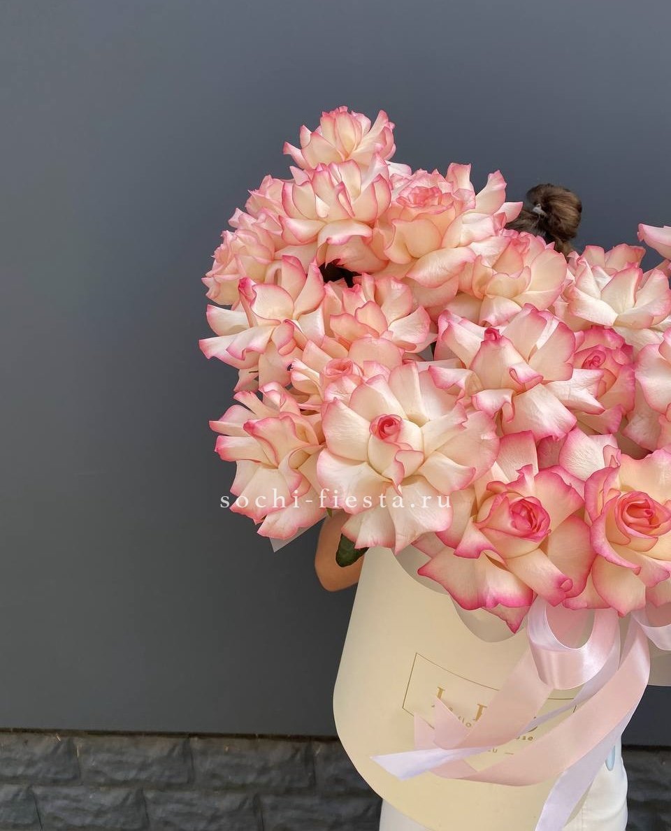 гортензии, пионовидные кустовый розы, декоративная зелень, бокс D25.