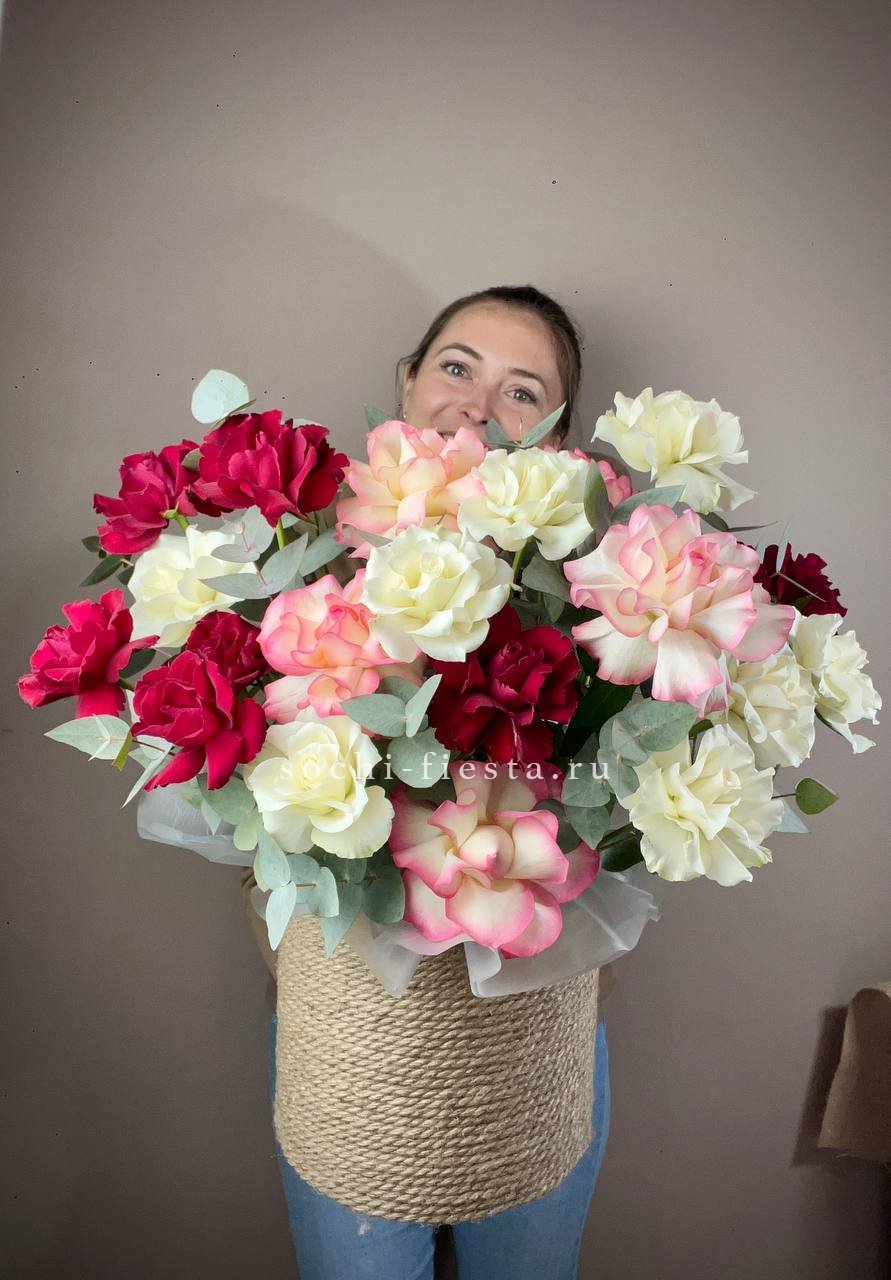 Для заказа товара "35 французских роз микс в джутовом боксе" с доставкой в Орске нажмите в корзину