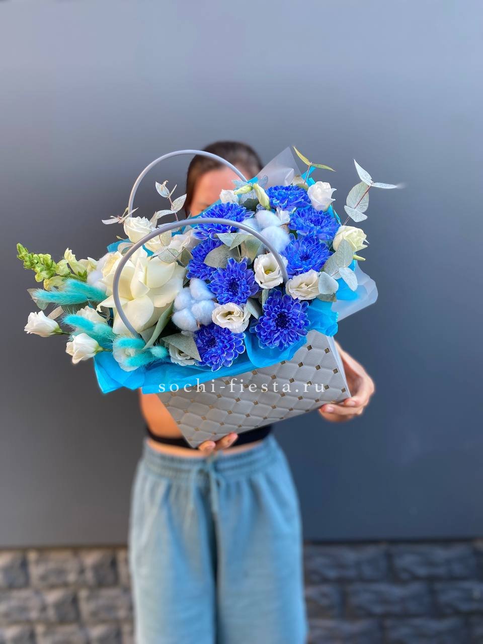 Воплощение изысканности и тренда! Эта стильная композиция в розовой сумочке объединяет в себе яркие цветовые акценты и современный флористический дизайн. Она идеально подойдет для модного образа или в качестве креативного подарка для ценителей необычных решений. Безупречный вкус в каждой детали.