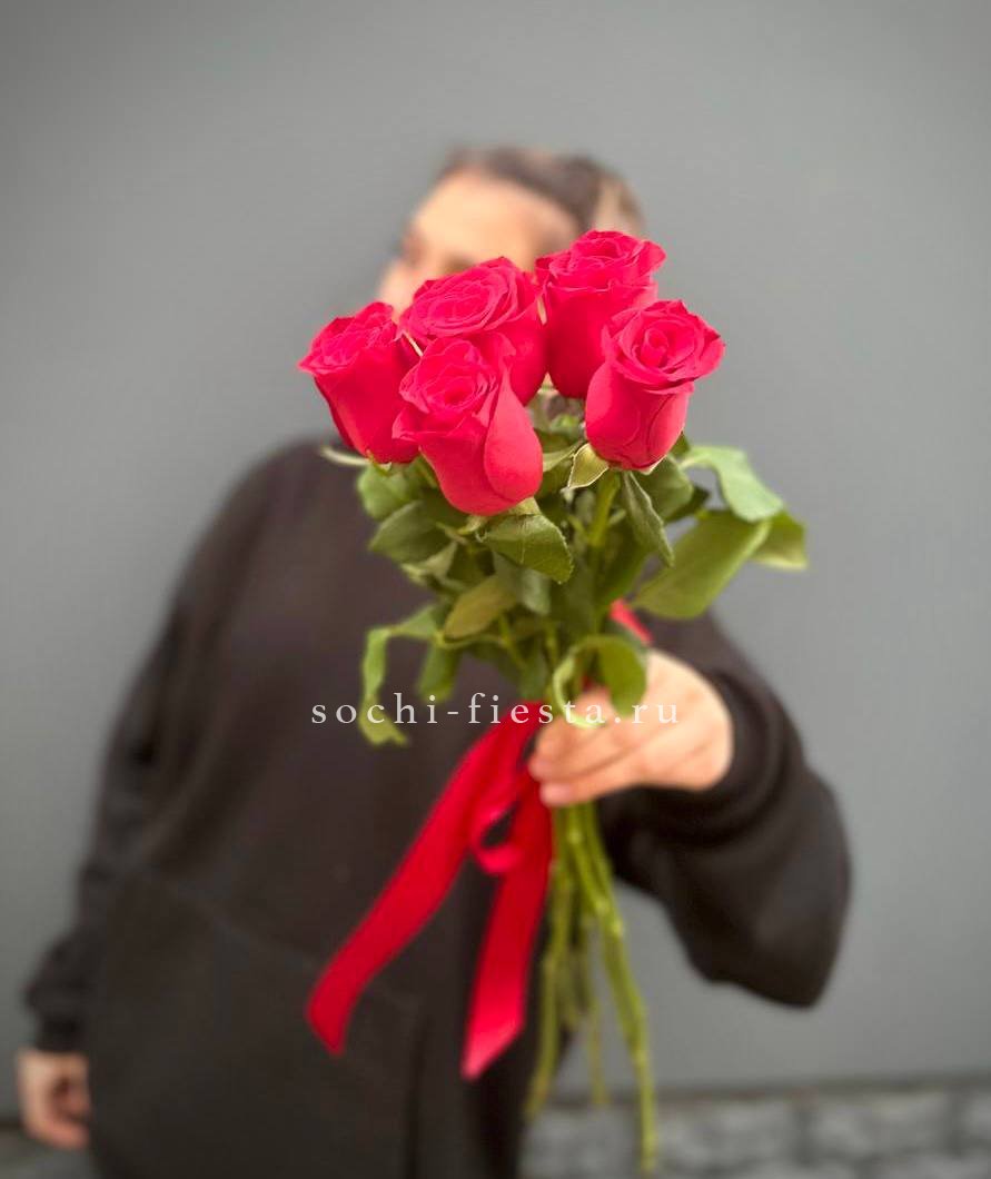 розовая роза- 5 шт, лента. Данная цена доступна при единовременном заказе от 10 шт.