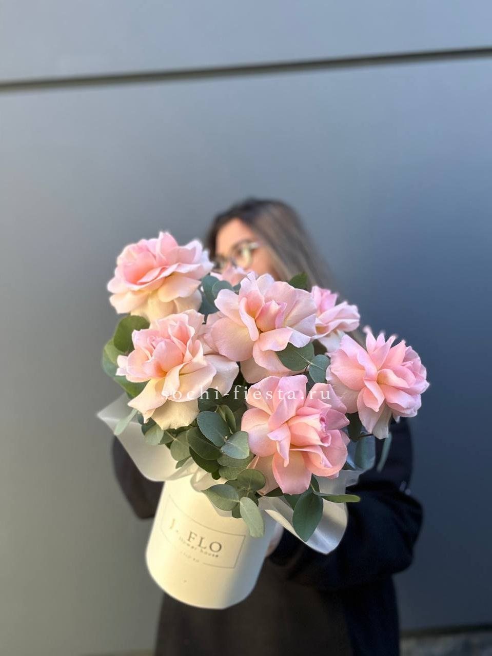 вывернутые розы- 7 шт., цилиндр D13, эвкалипт, лента, упаковка. Данная цена доступна при заказе от 10 шт.