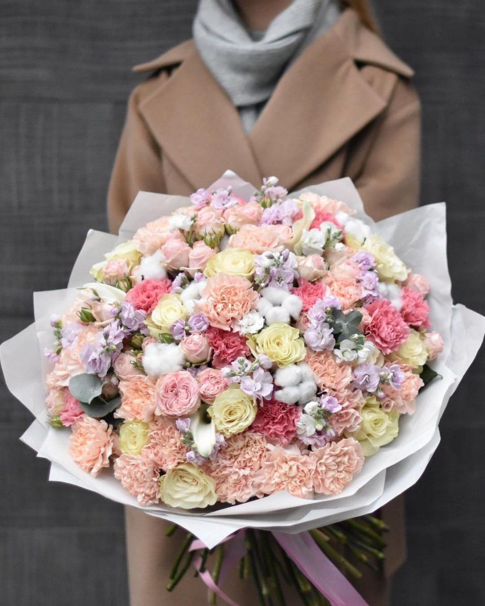 Мы работаем только со свежими цветами — букеты радуют от 7 до 14 дней и дольше при правильном уходе.