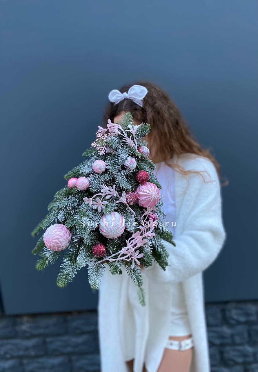 Пушистая ёлочка из датского нобилиса с яркими игрушками на ветках. Форма повторяет силуэт настоящего дерева и занимает совсем немного места. Готова к размещению сразу после распаковки.