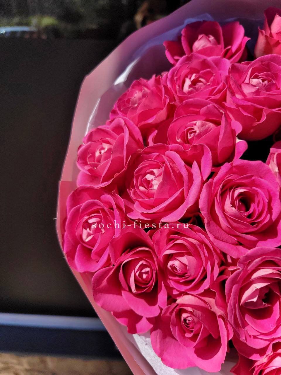 Тридцать пять стеблей формируют объемную композицию в розовой гамме. Букет занимает пространство уверенно и держит форму за счет плотной сборки. Классика, которая работает всегда.